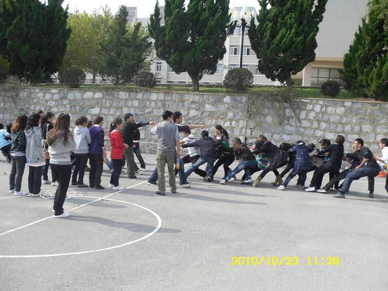 趣味运动会共有定点投篮,跳大绳和踢毽子,拔河四大类,各个环节中参赛队员都积极努力地进行比赛,场上的加油声和喝彩声不断。其中,拔河比赛最令人振奋,赛场上队友们的齐心协力,场外拉拉队的欢呼雀跃,使整个趣味运动会的气氛达到了高潮。本次运动会于午时十一时三十分胜利闭幕,最终,会计08-1,会计09-4,会计09-2,获得了团体一、二、三等奖。。