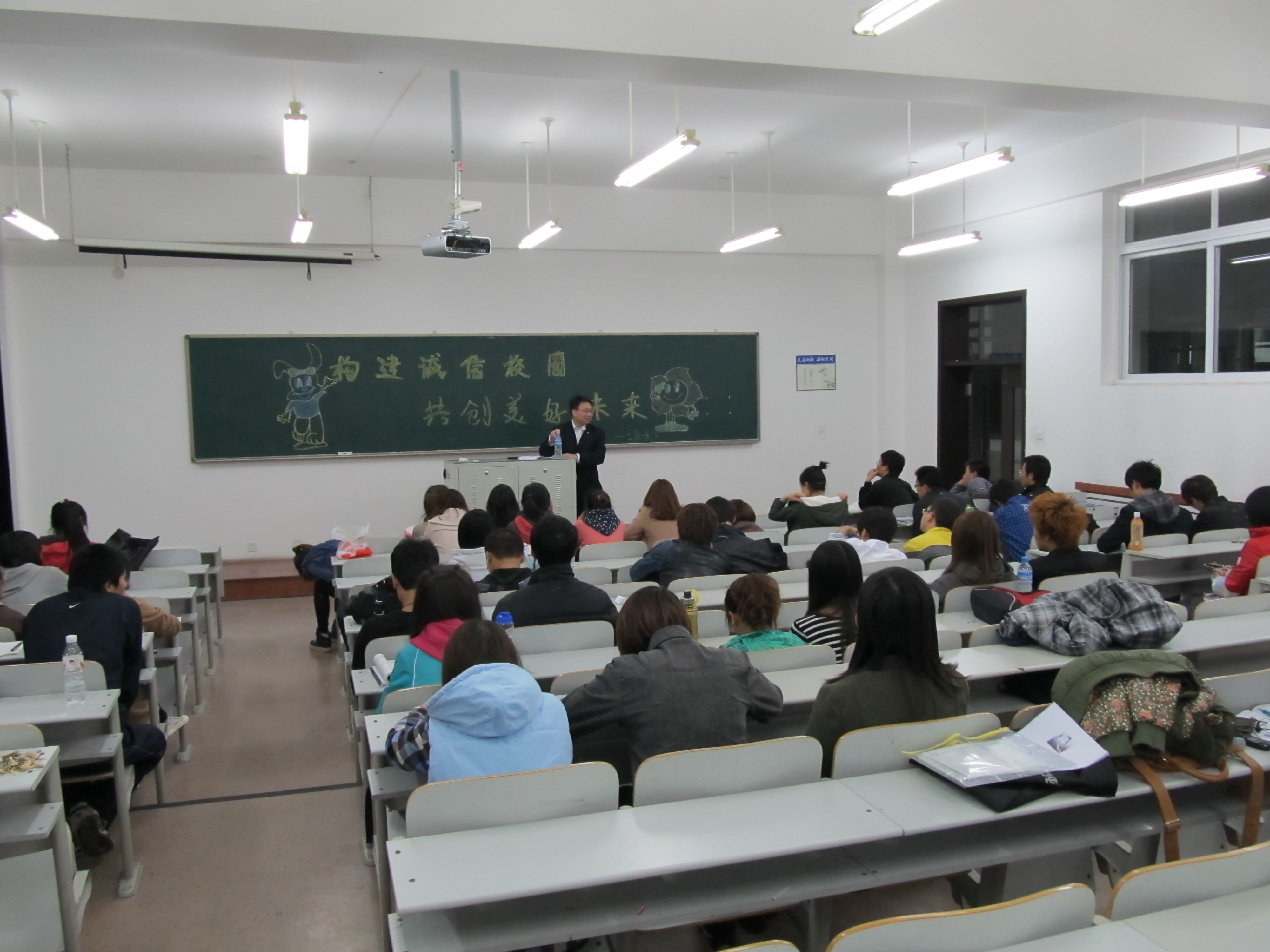 系列活动之三:诚信讲座。2011年11月4日,公司在大黑石校区开展了主题为“老员工诚信”的教育讲座,由刘耀东老师讲演, 2011级全体员工参加。刘耀东老师用一个个鲜明的事例向同学们阐述了诚信的重要性,让诚信的花朵开满全校。