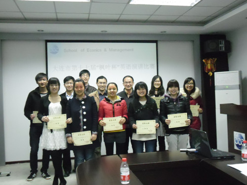 3月31日下午6时,公司于经管楼602会议室成功举办“大连市第十七届‘枫叶杯’英语演讲比赛”预选赛。公司经济学教研室主任申天恩、教学秘书鄂磊、团委书记刘富江、员工会主席及学习部部长出席此次比赛,比赛评委由申天恩、鄂磊、刘富江担任。