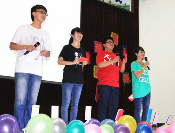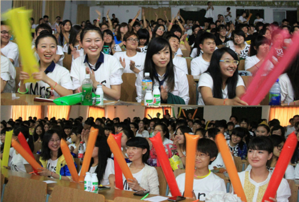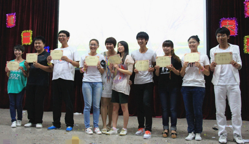 下午五时许,联欢会在被气球、彩带装点一新的二阶二教室举行。2012级所有同学凭统一佩戴的饱含祝福之意的五彩绳入场,300余支飘扬的五彩绳也成为渤海校区端午节的一道别样的风景。联欢会历时3个半小时,包含班级风采回顾、才艺展示、抽奖互动及颁奖四个环节。晚会在《It’s fire》带来的热情舞蹈中拉开帷幕,新疆舞《麦西莱甫》、舞台剧《爱情公寓》、手语表演《相亲相爱一家人》、诗朗诵《致青春》、男生合唱《奔跑》等众多节目,凭借着同学们独特的表演魅力晚会高潮迭起,异彩纷呈。其间穿插展播的班级视频回顾中的每一段故事、每一张笑脸,都是他们留在大黑石最美好的记忆,置身其中的同学们欢声迭起,掌声不断。中场抽奖过后大二的何家欢学长为大一学弟学妹们献上的一曲《壮志雄心》,将联欢会推向高潮。最终的颁奖环节中各班级都获得了为他们量身定做的“最会二班级”、“最有爱的班级”、“最佳牛津奖”等特色奖项。