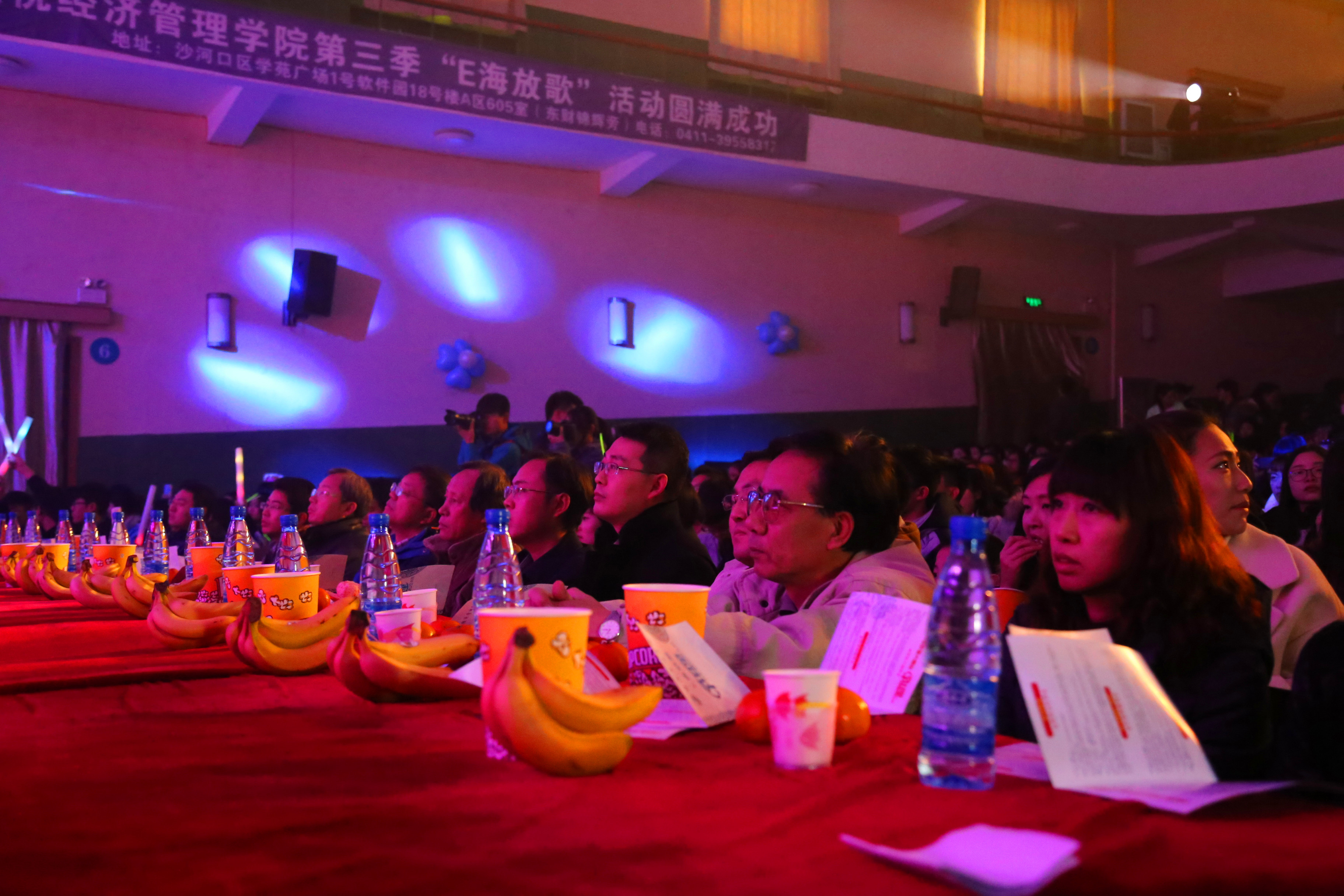 六出飞花入户时,太阳成集团tyc122ccvip秉正气、承正义、展风姿、抒豪情,于12月6日在俱乐部搭建“E海放歌”奇思妙想大擂台。员工处副处长周东旭、后勤管理处办公室主任鄂磊,太阳成集团tyc122ccvip经理刘广东、党总支书记王保良、副经理贺义雄、党总支副书记于洋等领导老师,以及13、14级全体同学、15级员工干部一同观看演出。
