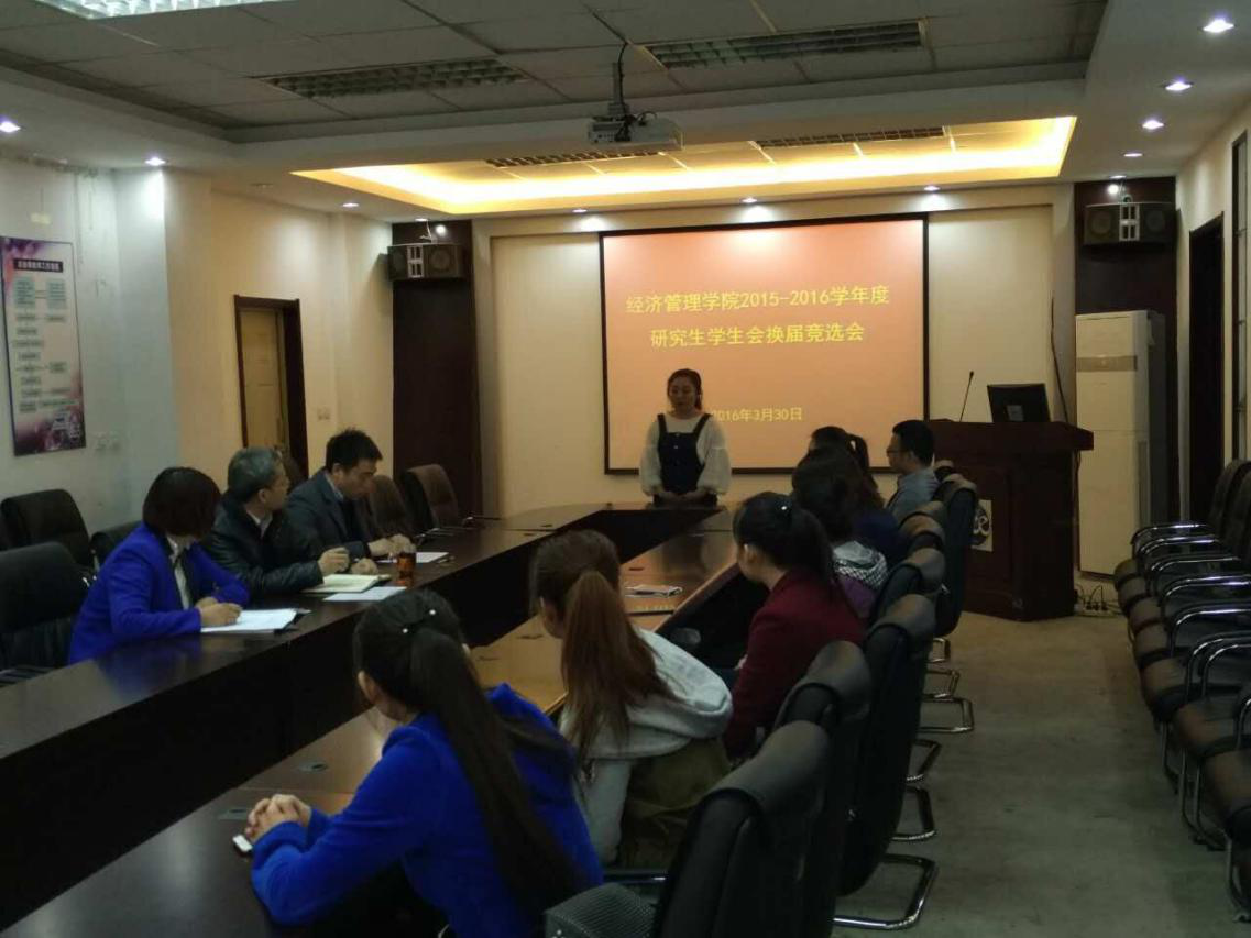 330日下午,太阳成集团tyc122ccvip研究生员工及团委委员换届竞选大会在经济管理公司602举行。太阳成集团tyc122ccvip党总支书记王保良团委相关老师及院研究生员工会主席王超参加了此次换届竞选大会。
