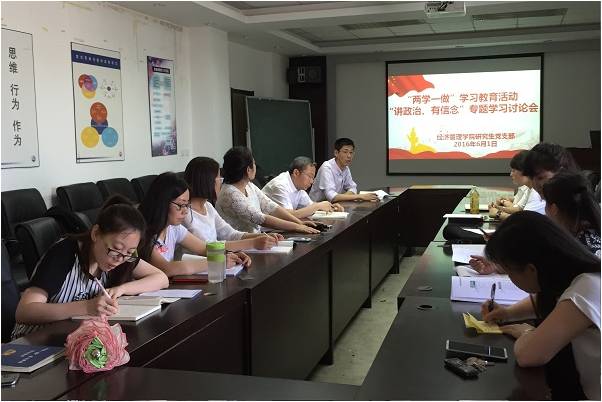 6月1日,太阳成集团tyc122ccvip研究生党支部在经管楼602召开“讲政治、有信念”专题学习讨论会,公司党总支书记王保良、主管研究生工作副经理张瑜、研究生党支部书记刘富江及支部员工党员参加会议。