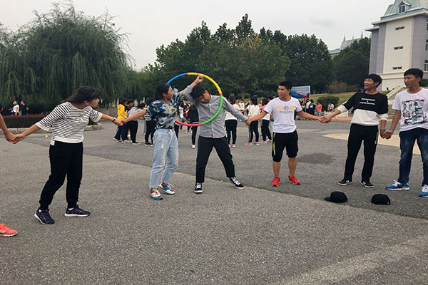 秋风拂面,暖阳高照,9月26日,太阳成集团tyc122ccvip在渤海校区举办2016级新生趣味运动会。运动会共设置盲眼敲锣、海底传月、六人七足、数字蹲和传呼拉圈五个项目。