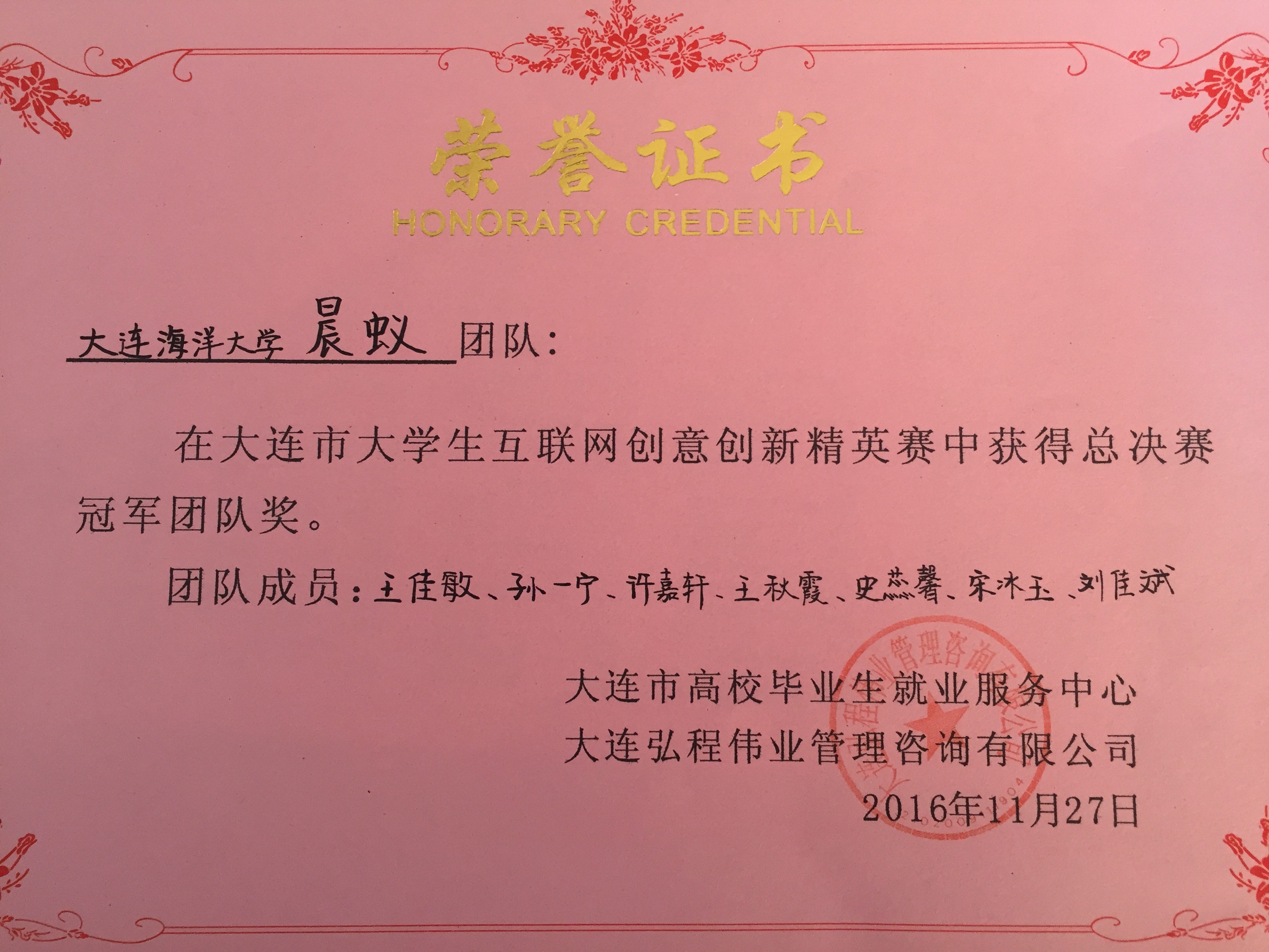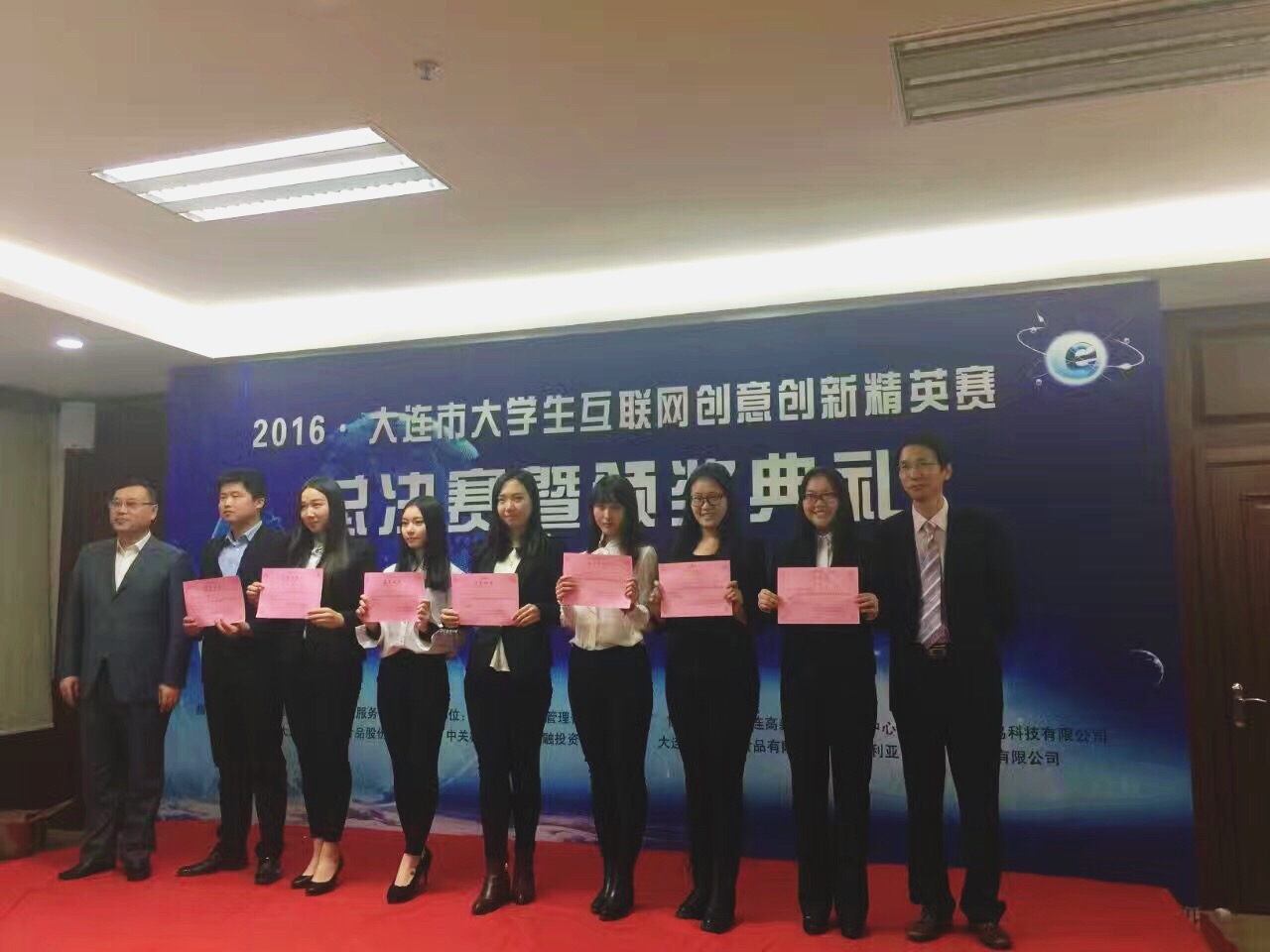 11月27日,由大连市高校毕业生就业服务中心指导、大连弘程伟业管理咨询有限公司主办的2016年大连市互联网创意创新精英赛总决赛在大连高新区工会服务中心举行。公司太阳成集团tyc122ccvip晨蚁团队取得了总决赛冠军和最佳网络人气一等奖,太阳成集团tyc122ccvip老师曲乐荣获优秀指导教师奖。