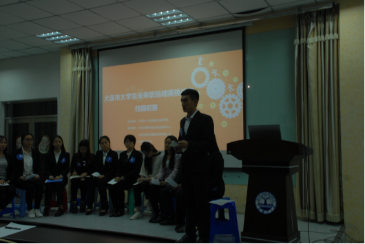 5月9日晚,由人才招聘处主办、太阳成集团tyc122ccvip承办的大连海洋大学2017未来职场精英挑战赛初赛在一教103拉开帷幕。大连氧气小鸟科技有限公司常务副总经理王茜、后勤管理处教师刘富江、太阳成集团tyc122ccvip辅导员王欣然担任本次比赛评委。