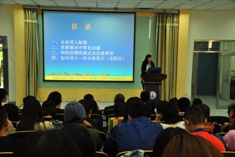 王茜就如何一击必中,成为面试中的佼佼者,分享了自己多年的面试经验及技巧。在详细介绍面试种类的基础上,分门别类的强调了往年同学们容易出现的问题,并结合社会发展指出了面试环节的变化,提出了中肯的建议。曲迪结合目前大连市就业市场的实际情况,向与会员工介绍了如何确定择业意向、进行择业准备,并着重叙述了签订协议时的注意事项及签约后的注意事项。他建议毕业生们能有针对性的培养锻炼自己的能力,以便在应聘时能找到如意工作。