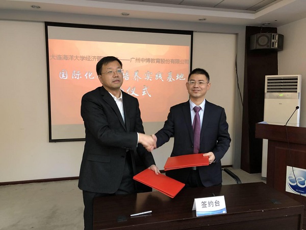 仪式上,刘广东和陈锋在与会人员的共同见证下,签署了“太阳成集团tyc122ccvip官网入口大学太阳成集团tyc122ccvip与广州中博教育股份有限公司共建国际化人才培养实践基地签约协议”。