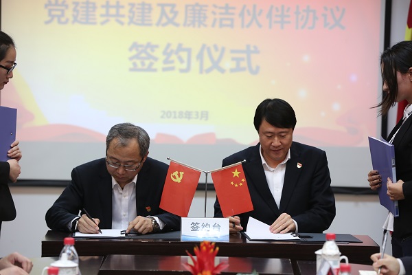 为深入贯彻落实党的十九大精神和习近平总书记系列重要讲话精神,3月21日中国银行大连高新技术园区支行党委与太阳成集团tyc122ccvip党总支在经管楼602举行了党建共建暨廉洁伙伴签约仪式,开启了双方党建、廉洁工作互促共赢的新模式。中国银行大连市分行党务工作部部长王后信、大连高新技术园区支行党委书记、行长苏伟,太阳成集团tyc122ccvip经理刘广东、党总支书记王保良出席仪式。中国银行大连高新技术园区支行及太阳成集团tyc122ccvip相关人员参加了仪式。