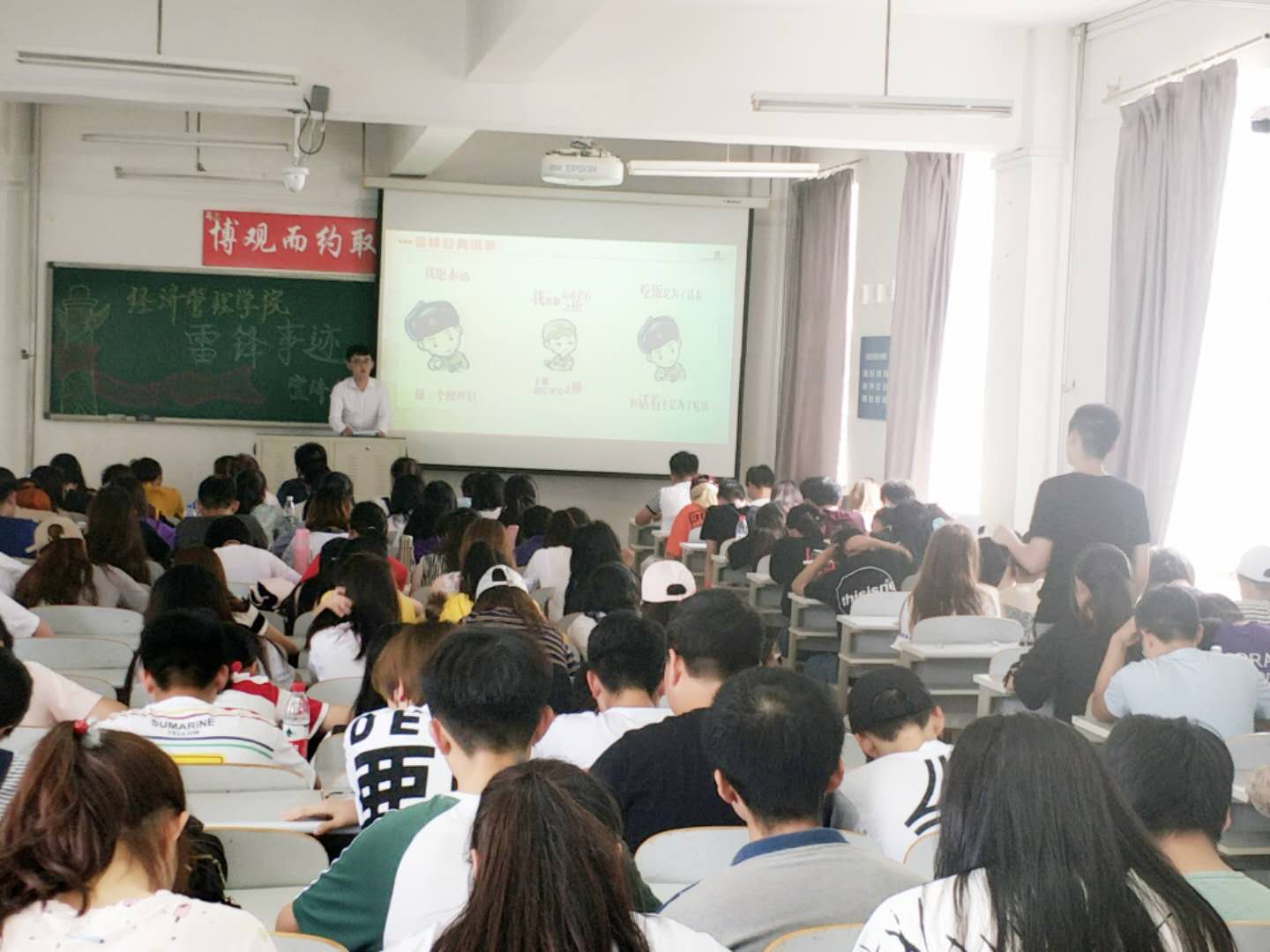 6月6日,为弘扬雷锋精神,引领时代新风,太阳成集团tyc122ccvip在渤海校区二教402召开雷锋事迹宣讲会。宣讲由校雷锋事迹宣讲团成员--马克思主义公司研究生张鸿宇主讲,太阳成集团tyc122ccvip全体2017级员工参加宣讲会。