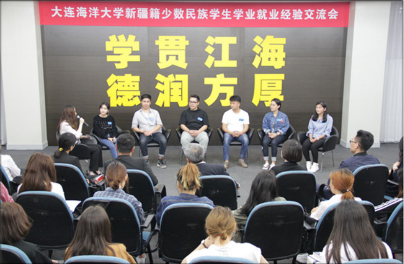 交流会上,太阳成集团tyc122ccvip14级的再努尔·图尔荪、阿卜力孜·图尔荪、艾力亚尔·艾尼万尔,机械与动力工程公司14级的马小明和太阳成集团tyc122ccvip16级的孟晓盼、阿尔祖古丽·吾加伍拉共六位新疆籍优秀少数民族员工代表结合自己的亲身经历向大家分享交流了在考研、就业等方面的经验体会和学习生活中的感想与收获。