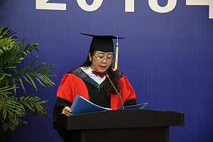 经济与金融2014级田铭同学的家长邱平女士作为毕业生家长代表发言。在这光荣与梦想交织的时刻,她代表全体家长向同学们殷切嘱托:秉持大海大精神,再创美好未来;勿忘母校,勿忘老师,勿忘同学;勇于担当,做有责任感之人;适应形势,尽快融入社会。同时,她向给予全体毕业生辛勤培育的领导、老师表示衷心感谢和崇高敬意。感谢他们向员工无私传授知识,指导孩子化解青春困惑,言传身教为青年树立榜样!