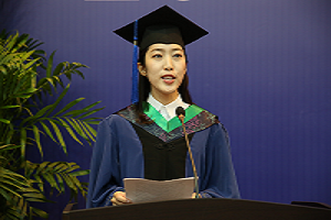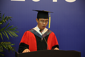 农村与区域发展2016级刘楠代表全体研究生毕业生发言。在这所质朴而又开放、严谨而又包容的蓝色学府,怀揣梦想,潜心学术,掌握丰富的专业知识,培养良好的科研素养。忆往昔,峥嵘岁月;展未来,任重道远。学历的获得只是阶段性成果,学问的研修却是终生不懈。毕业意味着求员工涯的圆满谢幕,更意味着未来征程的扬帆起航。一代代大海大人对蓝色理想的传承与践行,激励莘莘学子内心皎洁,为之奋斗。
