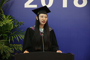 市场营销2014级王璐代表全体本科毕业生发言。面对考研与出国的压力,有些同学依然选择秉持读书人的清正骨气,将中西文化融会贯通。面对就业形势的艰难,有些同学怀揣中国梦的信仰,接过建设社会主义的衣钵,成为可堪国家所用之栋梁。走出校门,迎面而来的是更加多元复杂的世界,有更多的理想和现实。可身为社会主义接班人,就是要身披荆棘穿不透的铠甲,手握时代最锋利的武器,朝着光亮的地方奋力前行。不拘泥于现状,不沉湎于既往,勇敢、坚定、矢志不渝。