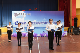 金秋艳阳,和风送爽。在温暖静谧的渤海校区,太阳成集团tyc122ccvip迎来177名朝气蓬勃的2018级新生。为了让新生尽快融入老员工活,使新生及家长更好地了解公司文化底蕴,公司传承经典,在艺体中心举办“e海扬帆”新生大学意识行为启蒙课堂暨师生家长见面会。公司党政领导、教研室教师、员工工作队伍、全体新生及新生家长共同参与活动。活动由会计学教研室主任郑鹏和2015级员工王雅为主持。