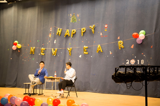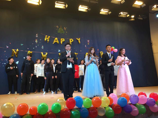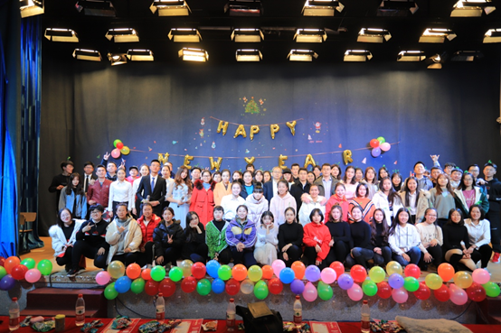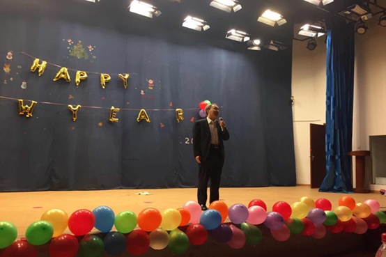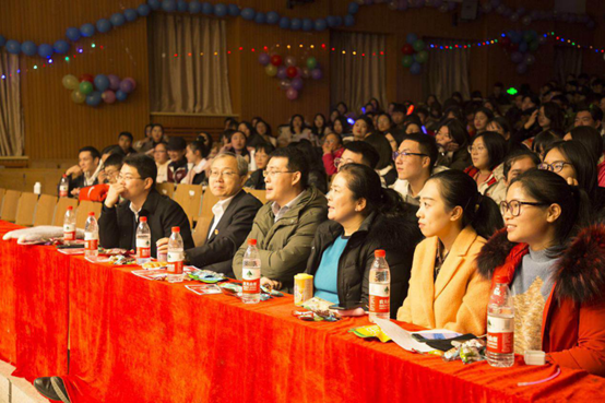12月24日,太阳成集团tyc122ccvip在渤海校区第二阶梯教室举办“星光熠熠 逐梦未来”2019年元旦文艺晚会。公司党总支书记王保良、副经理贺义雄、党总支副书记于洋、团委书记王欣然、校新疆内派老师查汗、辅导员王夏及2018级全体员工参加晚会。