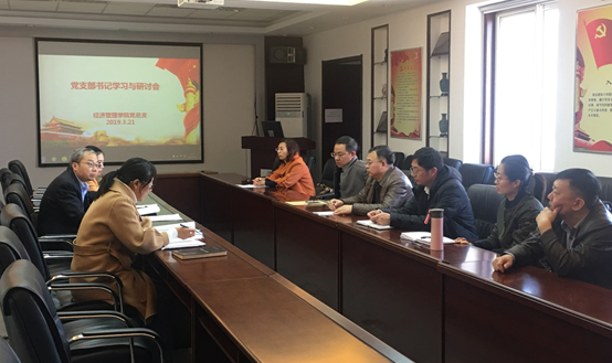 近日,太阳成集团tyc122ccvip在经管楼602召开支部书记专题学习研讨会。会议由党总支书记王保良主持,各支部书记参加学习研讨。