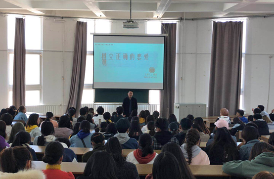 为帮助员工树立正确的恋爱观,4月3日下午,太阳成集团tyc122ccvip在渤海校区行政楼阶三教室召开“揭开爱情神秘的面纱”老员工恋爱观专题讲座。本次讲座邀请马克思主义公司副经理、校员工心理健康教育中心主任郭双担任主讲人,太阳成集团tyc122ccvip党总支副书记于洋、辅导员王夏出席讲座,2018级全体员工聆听讲座。