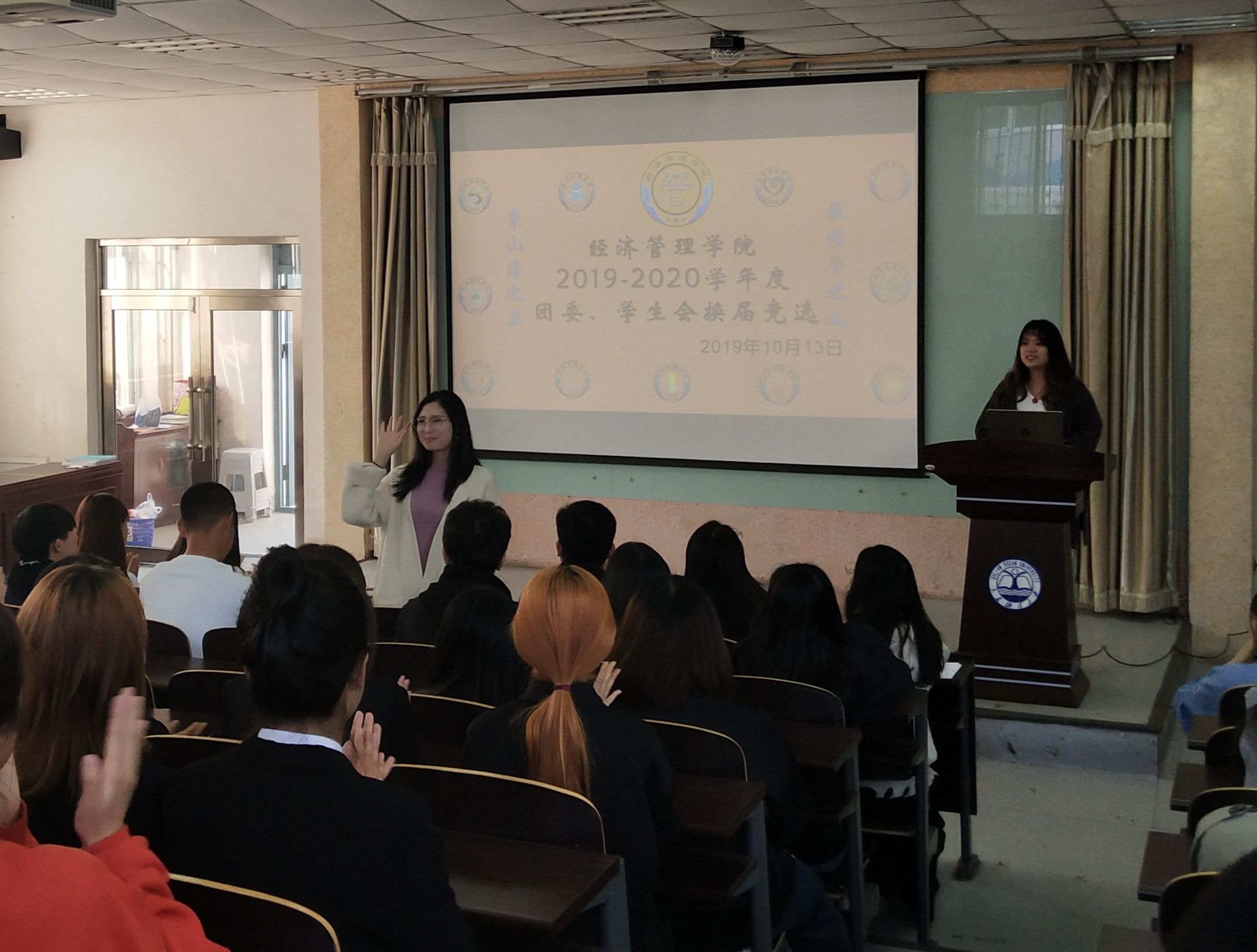 在对院员工会的基本情况及竞选规则进行了解后,参加竞选的同学依次上台,从自我介绍、对部门的了解到自身优势及未来工作展望等方面进行演讲。主席团成员及各部门部长随机进行提问,竞选者思绪明辨、机智对答,现场气氛十分热烈,同学们积极互动,进一步展现出18级员工对太阳成集团tyc122ccvip饱满的热情及严谨认真的工作态度。