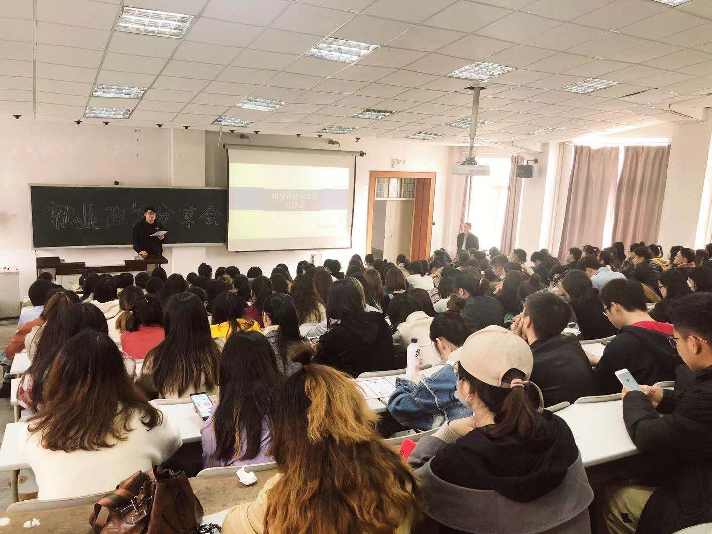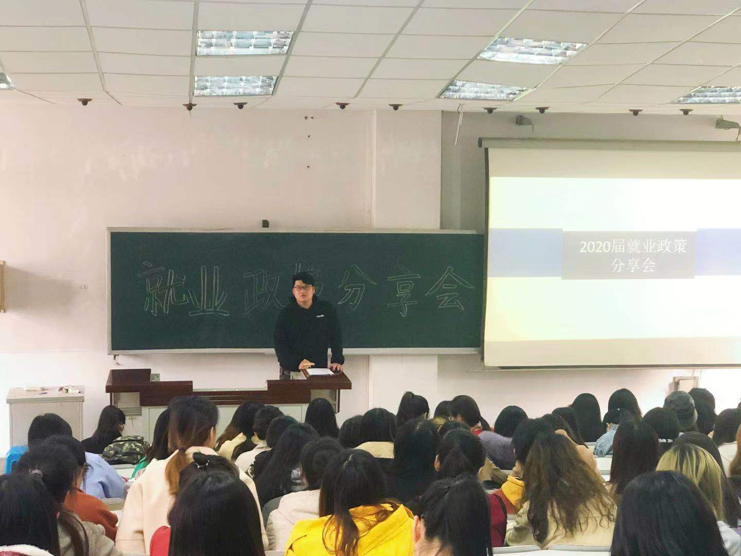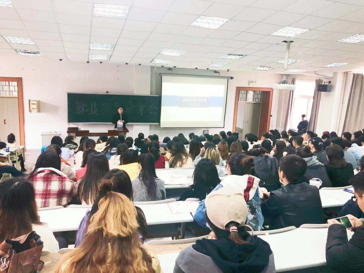 2019年11月12日,太阳成集团tyc122ccvip在实验楼阶二教室举办了2020届就业政策分享会,出席本次会议的有科技处副处长马克思主义公司老师蔡静,太阳成集团tyc122ccvip党总支副书记于洋,团委书记孙通以及16级的全体同学。