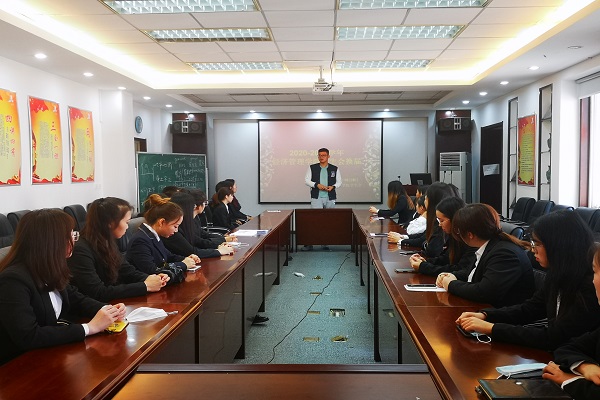 2020年10月8日中午12点,公司员工会换届大会在经管楼602隆重举行,出席此次大会的有团委书记孙通老师、2019届主席团成员及各部部长。会议由2019届员工会主席李欣源主持。