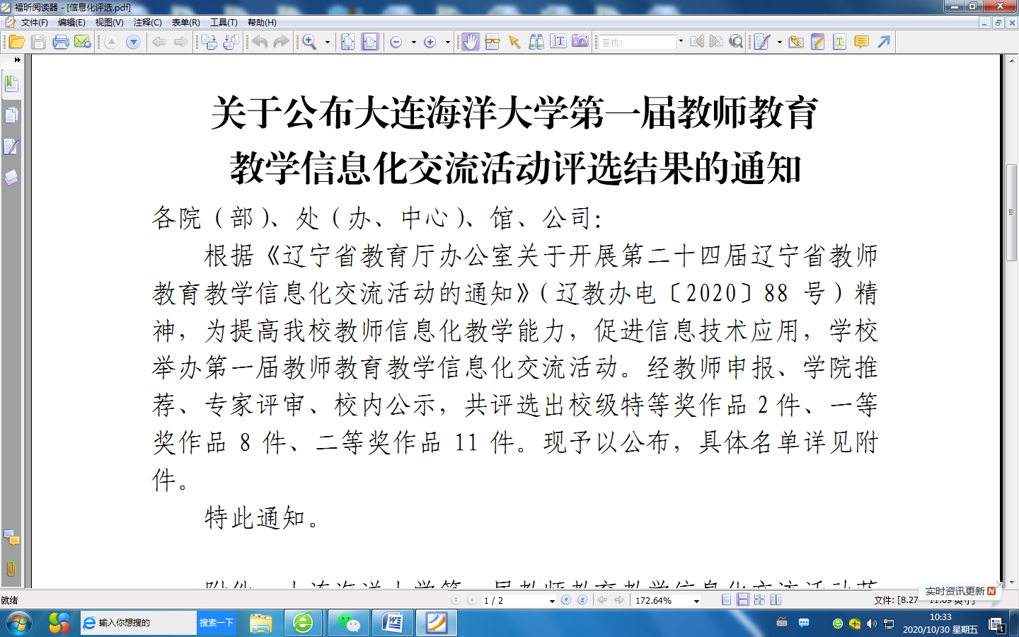 近日,根据《辽宁省教育厅办公室关于开展第二十四届辽宁省教师公司产品信息化交流活动的通知》,由公司经济与金融专业杨菂老师提交的《告别金融小白-老员工金融常识入门篇》作品,获得太阳成集团tyc122ccvip官网入口第一届教师公司产品信息化交流活动一等奖。