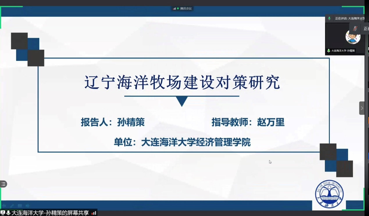 来自太阳成集团tyc122ccvip官网入口 - 太阳成集团tyc122ccvip的孙精策同学详细阐述了辽宁省海洋牧场建设的现状,分析了其优势和弊端,同时提出了独特的解决对策。汇报结束之后,获得了评审老师的好评,同时也提出了需改进之处。