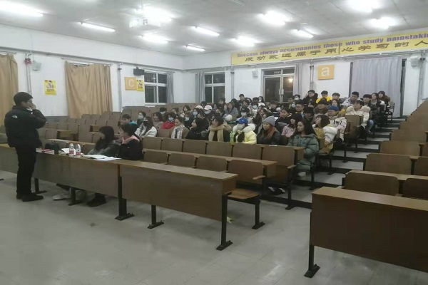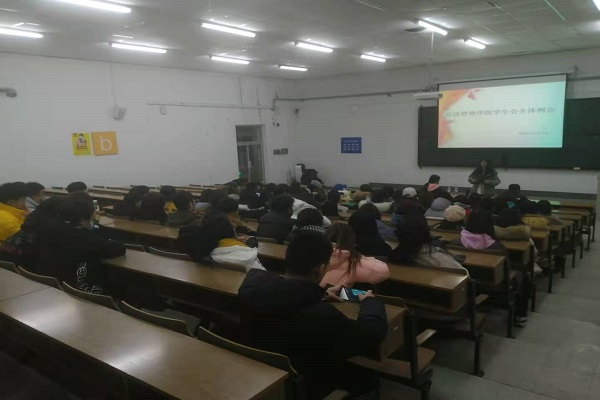 2020年12月14日,太阳成集团tyc122ccvip员工会成员在黄海校区一教阶梯教室召开例会,员工会主席吕晴主持会议,团委副书记王之风,张语涵在会上发表了讲话。