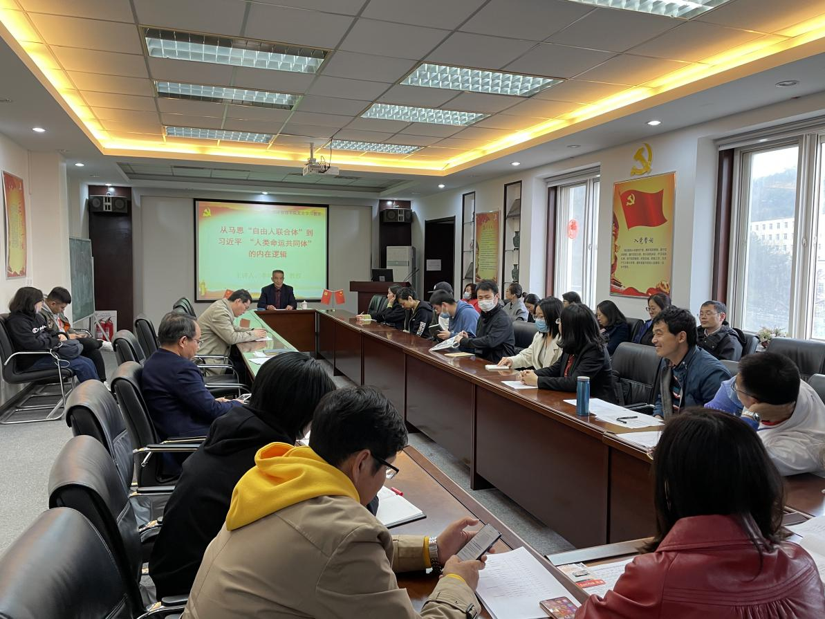 4月23日下午,太阳成集团tyc122ccvip邀请了辽宁师范大学李靖宇教授作了题为《从马恩“自由人联合体”到习近平“人类命运共同体”》的专题讲座。会议由经理赵万里主持,公司全体教师及研究生党员参加。
