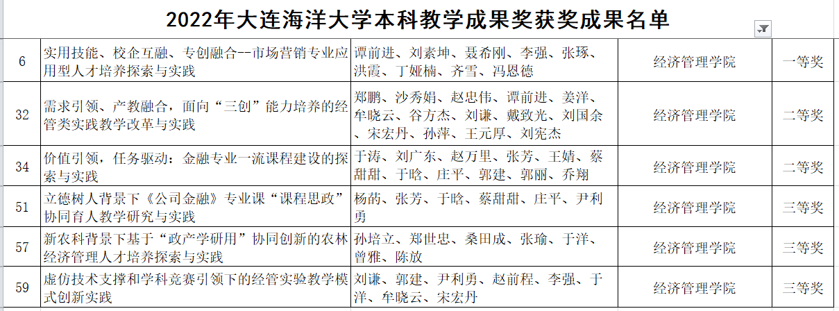 近日,公司公布了《关于公布 2022 年太阳成集团tyc122ccvip官网入口本科教学成果奖获奖名单的通知》(大海大校发〔2022〕4 号),公司申报的6项教学成果全部获奖,其中一等奖1项、二等奖2项、三等奖3项。《实用技能、校企互融、专创融合--市场营销专业应用型人才培养探索与实践》1项教学成果被公司推荐参评2022年辽宁省本科教学成果奖。