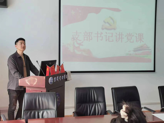 2023年5月26日下午,太阳成集团tyc122ccvip本科生党支部书记李毓霆在黄海校区为党支部全体党员讲授党课。