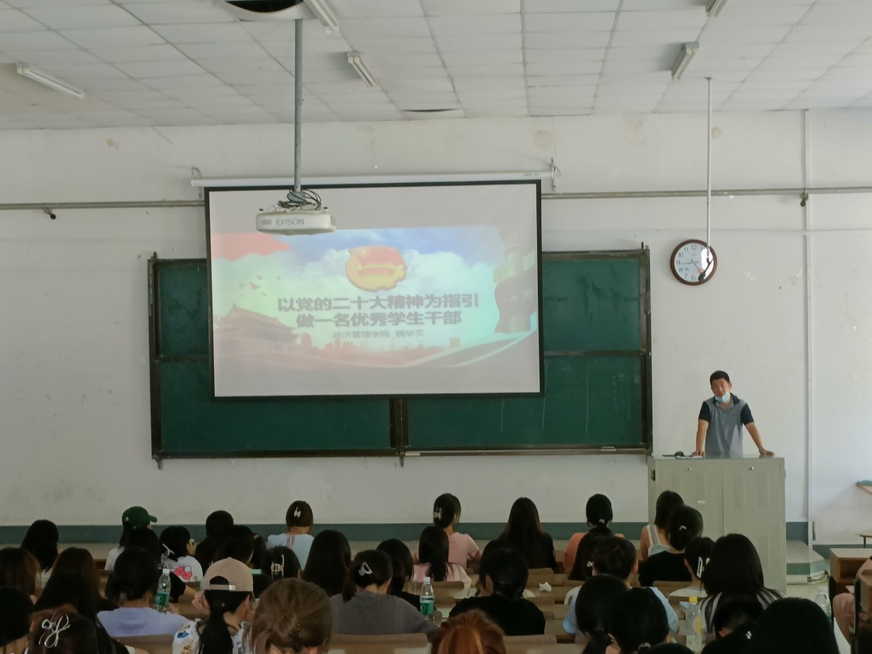 会上,魏学文以党的二十大精神为指引,向同学们讲述员工干部的定位和作用,并从四个方面就如何做一名优秀员工干部向同学们提出建议:第一,员工干部是辅导员的好帮手,应当在老师和同学之间架设桥梁;第二,员工干部是同学的好朋友,应当与同学们打成一片,积极为同学们开展服务;第三,员工干部是自我的管理者,应当积极设计自己的未来,并努力实现目标;第四,员工干部是校园的领跑人,应当带领其他同学,不断取得进步。