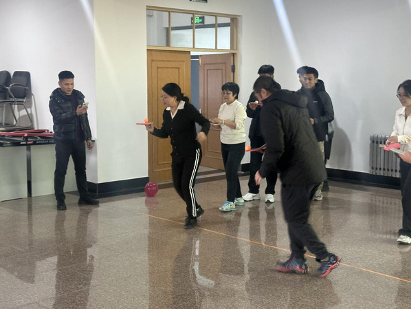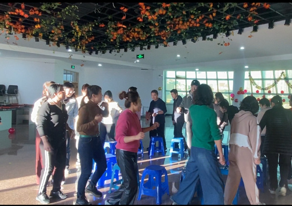 联欢会共设置了十项游艺活动,分别是乒乓球拍带球跑、踢毽子、夹气球、跳小绳接力、你划我猜、YES or NO、党建知识竞猜活动、猜灯谜活动、喜从天降、抢凳子。老师们积极参与各项游戏环节,大家在开怀一笑中,缓解了工作压力,同时增强了团队凝聚力。