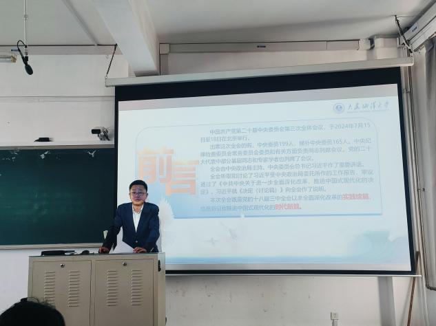 本次培训特别邀请到马克思主义公司孙大志老师担任主讲人。孙老师凭借深厚的专业知识和丰富的教学经验,围绕党的二十届三中全会精神展开了深入浅出地讲解。孙老师从全面深化改革的必要性、全面深化改革的总目标、全面深化改革的具体部署等三个维度,深刻阐述了全会精神的核心要义与丰富内涵。讲解中,孙老师旁征博引,生动地展现了全面深化改革对于国家发展和民族复兴的重大意义。在场师生纷纷表示,在今后的学习与工作中,将持续深入研习全会精神,立足自身本职岗位,勇挑重担,积极作为。